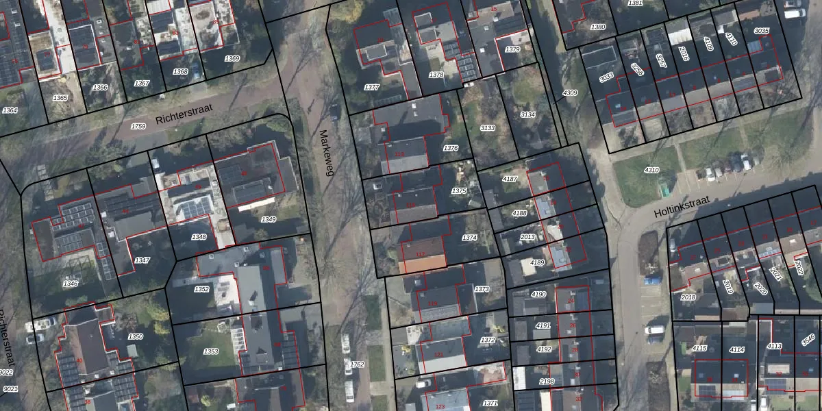 Het perceel waarop Markeweg 115 staat heeft een oppervlakte van 348 m². Dit is een groot perceel. De perceeloppervlakte wordt geregistreerd door het Kadaster. Gedetailleerde informatie over de maten van dit perceel kunt u vinden in het rapport Kadastrale kaart met maatvoering van Markeweg 115.