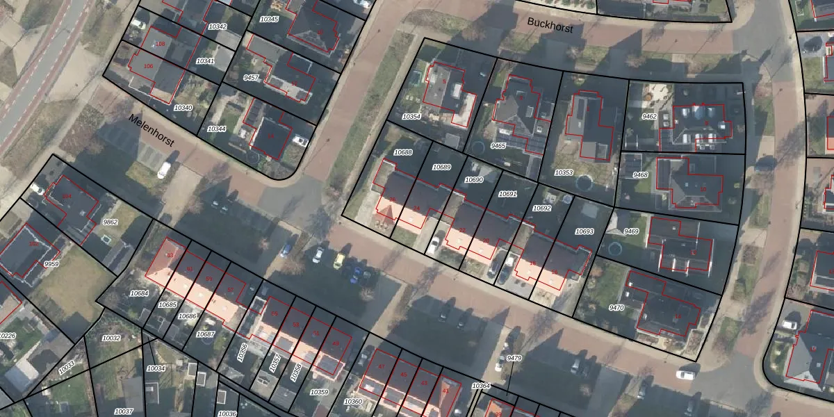 Het perceel waarop Melenhorst 24 staat heeft een oppervlakte van 235 m². Dit is een middelgroot perceel. De perceeloppervlakte wordt geregistreerd door het Kadaster. Gedetailleerde informatie over de maten van dit perceel kunt u vinden in het rapport Kadastrale kaart met maatvoering van Melenhorst 24.