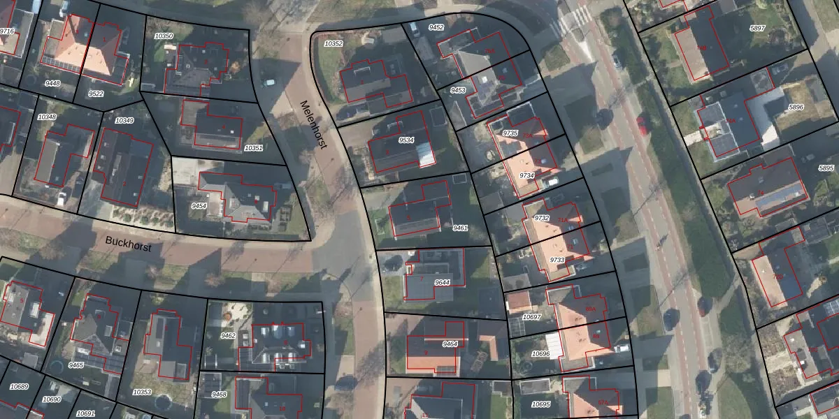 Het perceel waarop Melenhorst 5 staat heeft een oppervlakte van 452 m². Dit is een groot perceel. De perceeloppervlakte wordt geregistreerd door het Kadaster. Gedetailleerde informatie over de maten van dit perceel kunt u vinden in het rapport Kadastrale kaart met maatvoering van Melenhorst 5.