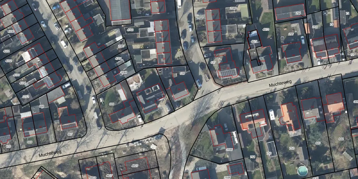 Het perceel waarop Muchteweg 24 staat heeft een oppervlakte van 377 m². Dit is een groot perceel. De perceeloppervlakte wordt geregistreerd door het Kadaster. Gedetailleerde informatie over de maten van dit perceel kunt u vinden in het rapport Kadastrale kaart met maatvoering van Muchteweg 24.