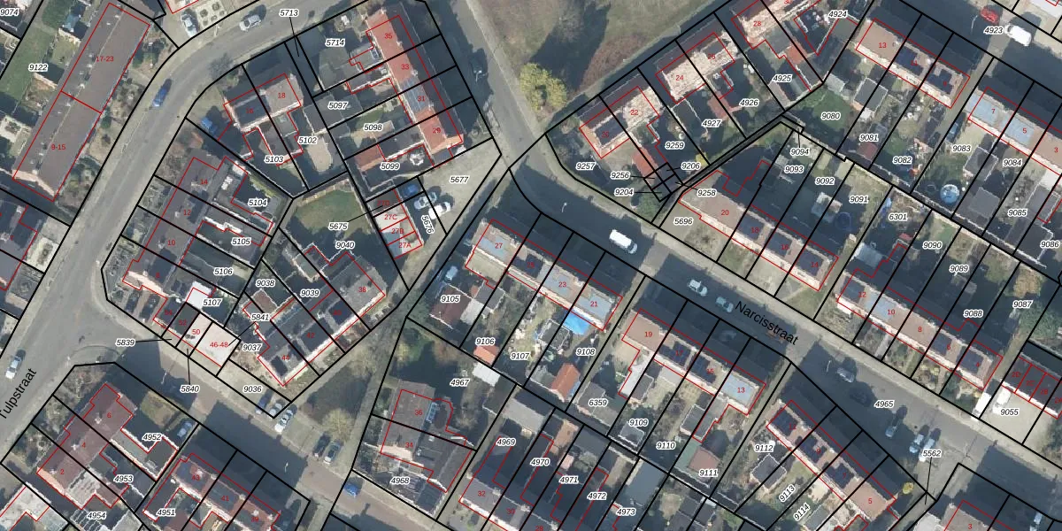 Het perceel waarop Narcisstraat 25 staat heeft een oppervlakte van 213 m². Dit is een middelgroot perceel. De perceeloppervlakte wordt geregistreerd door het Kadaster. Gedetailleerde informatie over de maten van dit perceel kunt u vinden in het rapport Kadastrale kaart met maatvoering van Narcisstraat 25.