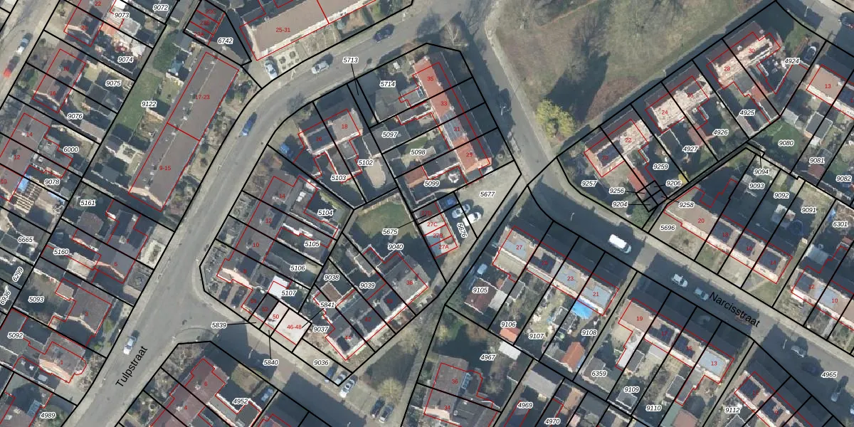Het perceel waarop Narcisstraat 27-D staat heeft een oppervlakte van 33 m². Dit is een klein perceel. De perceeloppervlakte wordt geregistreerd door het Kadaster. Gedetailleerde informatie over de maten van dit perceel kunt u vinden in het rapport Kadastrale kaart met maatvoering van Narcisstraat 27-D.