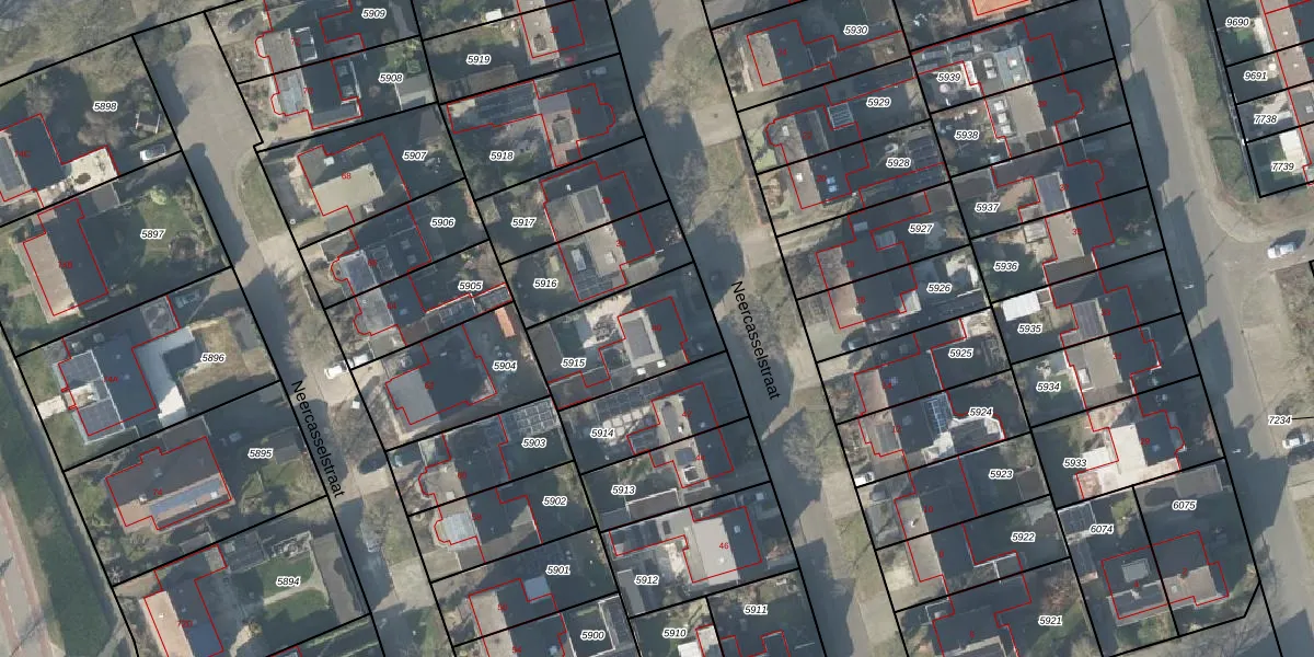 Neercasselstraat 40 is gelegen op kadastraal perceel LSR00H5915. Deze kadastrale aanduiding is uniek en wordt gebruikt door het Kadaster om eigendomsrechten en andere zakelijke rechten vast te leggen. Het perceel maakt onderdeel uit van de kadastrale gemeente Losser.