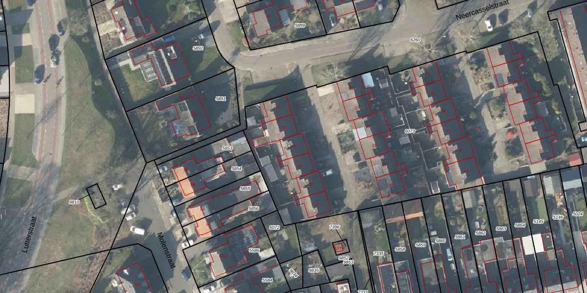 Het perceel waarop Neercasselstraat 43 staat heeft een oppervlakte van 4740 m². Dit is een zeer groot perceel. De perceeloppervlakte wordt geregistreerd door het Kadaster. Gedetailleerde informatie over de maten van dit perceel kunt u vinden in het rapport Kadastrale kaart met maatvoering van Neercasselstraat 43.