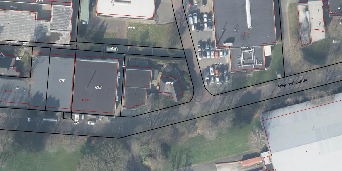 Nijverheidstraat 15 is gelegen op kadastraal perceel LSR00I8438. Deze kadastrale aanduiding is uniek en wordt gebruikt door het Kadaster om eigendomsrechten en andere zakelijke rechten vast te leggen. Het perceel maakt onderdeel uit van de kadastrale gemeente Losser.