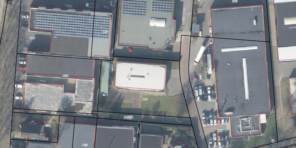 Het perceel waarop Nijverheidstraat 19 staat heeft een oppervlakte van 2121 m². Dit is een zeer groot perceel. De perceeloppervlakte wordt geregistreerd door het Kadaster. Gedetailleerde informatie over de maten van dit perceel kunt u vinden in het rapport Kadastrale kaart met maatvoering van Nijverheidstraat 19.
