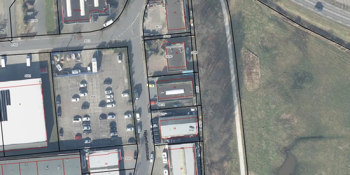 Het perceel waarop Nijverheidstraat 20 staat heeft een oppervlakte van 504 m². Dit is een groot perceel. De perceeloppervlakte wordt geregistreerd door het Kadaster. Gedetailleerde informatie over de maten van dit perceel kunt u vinden in het rapport Kadastrale kaart met maatvoering van Nijverheidstraat 20.