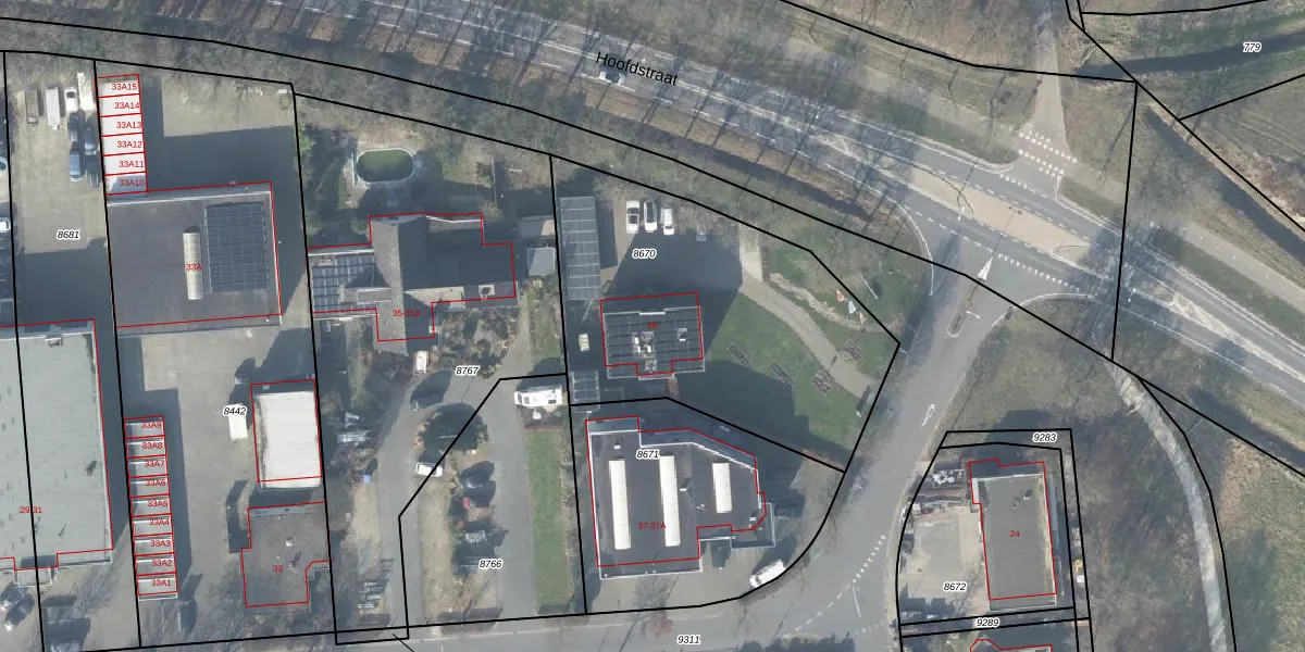 Het perceel waarop Nijverheidstraat 39 staat heeft een oppervlakte van 1550 m². Dit is een zeer groot perceel. De perceeloppervlakte wordt geregistreerd door het Kadaster. Gedetailleerde informatie over de maten van dit perceel kunt u vinden in het rapport Kadastrale kaart met maatvoering van Nijverheidstraat 39.
