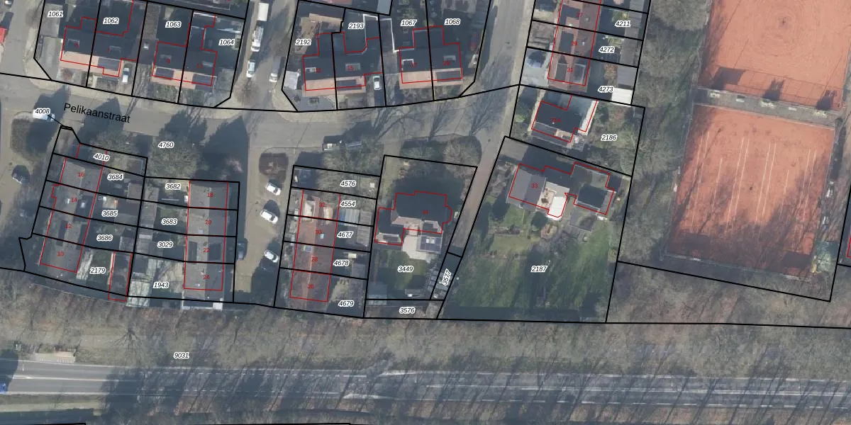 Het perceel waarop Pelikaanstraat 34 staat heeft een oppervlakte van 612 m². Dit is een groot perceel. De perceeloppervlakte wordt geregistreerd door het Kadaster. Gedetailleerde informatie over de maten van dit perceel kunt u vinden in het rapport Kadastrale kaart met maatvoering van Pelikaanstraat 34.