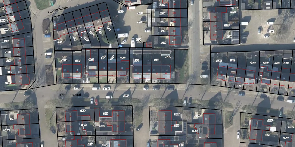 Het perceel waarop Richterstraat 22 staat heeft een oppervlakte van 152 m². Dit is een middelgroot perceel. De perceeloppervlakte wordt geregistreerd door het Kadaster. Gedetailleerde informatie over de maten van dit perceel kunt u vinden in het rapport Kadastrale kaart met maatvoering van Richterstraat 22.
