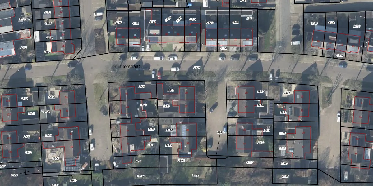 Het perceel waarop Richterstraat 39 staat heeft een oppervlakte van 256 m². Dit is een middelgroot perceel. De perceeloppervlakte wordt geregistreerd door het Kadaster. Gedetailleerde informatie over de maten van dit perceel kunt u vinden in het rapport Kadastrale kaart met maatvoering van Richterstraat 39.