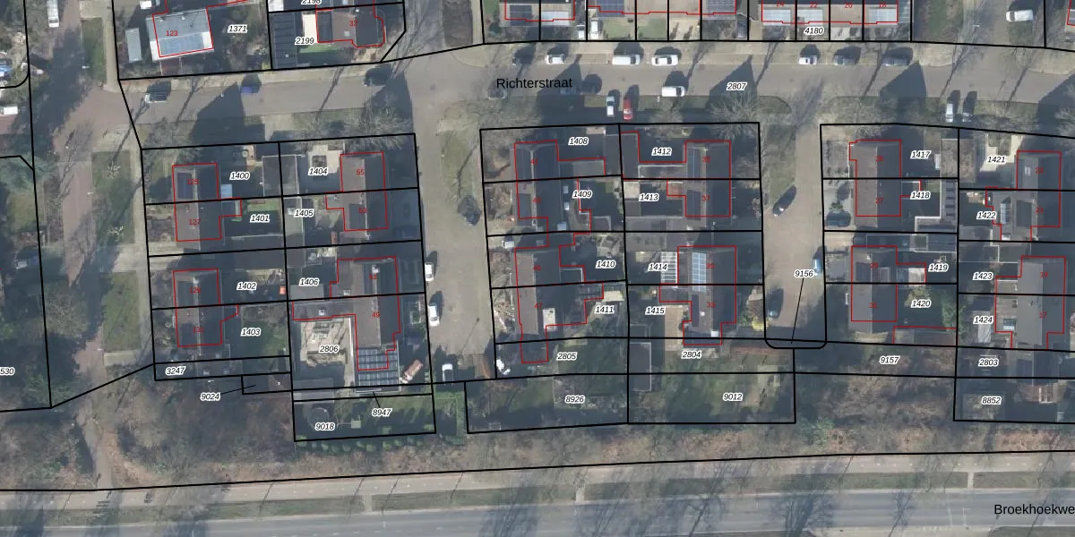 Het perceel waarop Richterstraat 45 staat heeft een oppervlakte van 247 m². Dit is een middelgroot perceel. De perceeloppervlakte wordt geregistreerd door het Kadaster. Gedetailleerde informatie over de maten van dit perceel kunt u vinden in het rapport Kadastrale kaart met maatvoering van Richterstraat 45.
