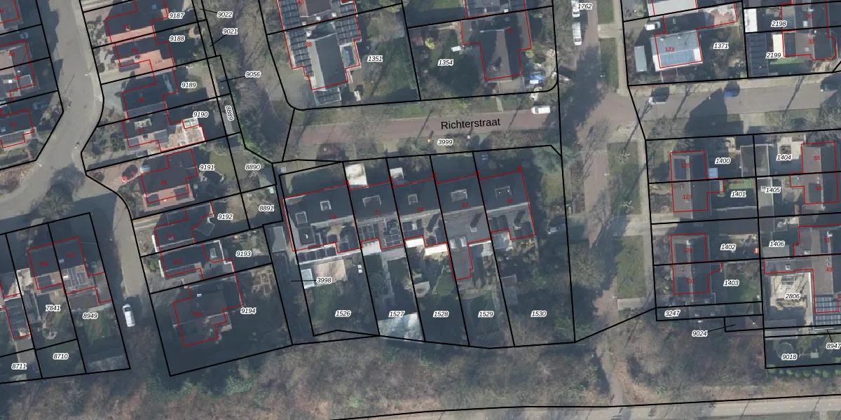 Het perceel waarop Richterstraat 69 staat heeft een oppervlakte van 467 m². Dit is een groot perceel. De perceeloppervlakte wordt geregistreerd door het Kadaster. Gedetailleerde informatie over de maten van dit perceel kunt u vinden in het rapport Kadastrale kaart met maatvoering van Richterstraat 69.