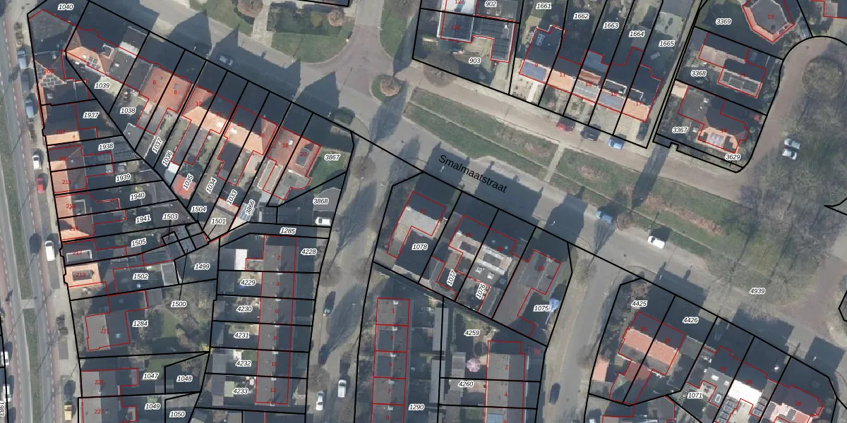 Het perceel waarop Smalmaatstraat 22 staat heeft een oppervlakte van 329 m². Dit is een groot perceel. De perceeloppervlakte wordt geregistreerd door het Kadaster. Gedetailleerde informatie over de maten van dit perceel kunt u vinden in het rapport Kadastrale kaart met maatvoering van Smalmaatstraat 22.