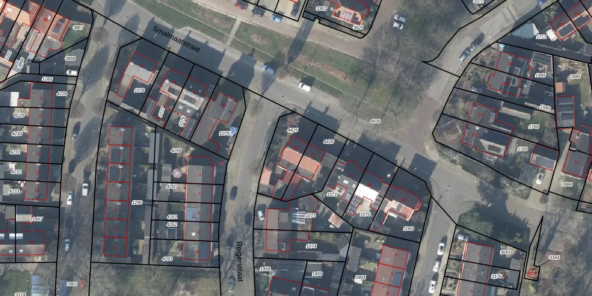 Het perceel waarop Smalmaatstraat 30 staat heeft een oppervlakte van 325 m². Dit is een groot perceel. De perceeloppervlakte wordt geregistreerd door het Kadaster. Gedetailleerde informatie over de maten van dit perceel kunt u vinden in het rapport Kadastrale kaart met maatvoering van Smalmaatstraat 30.