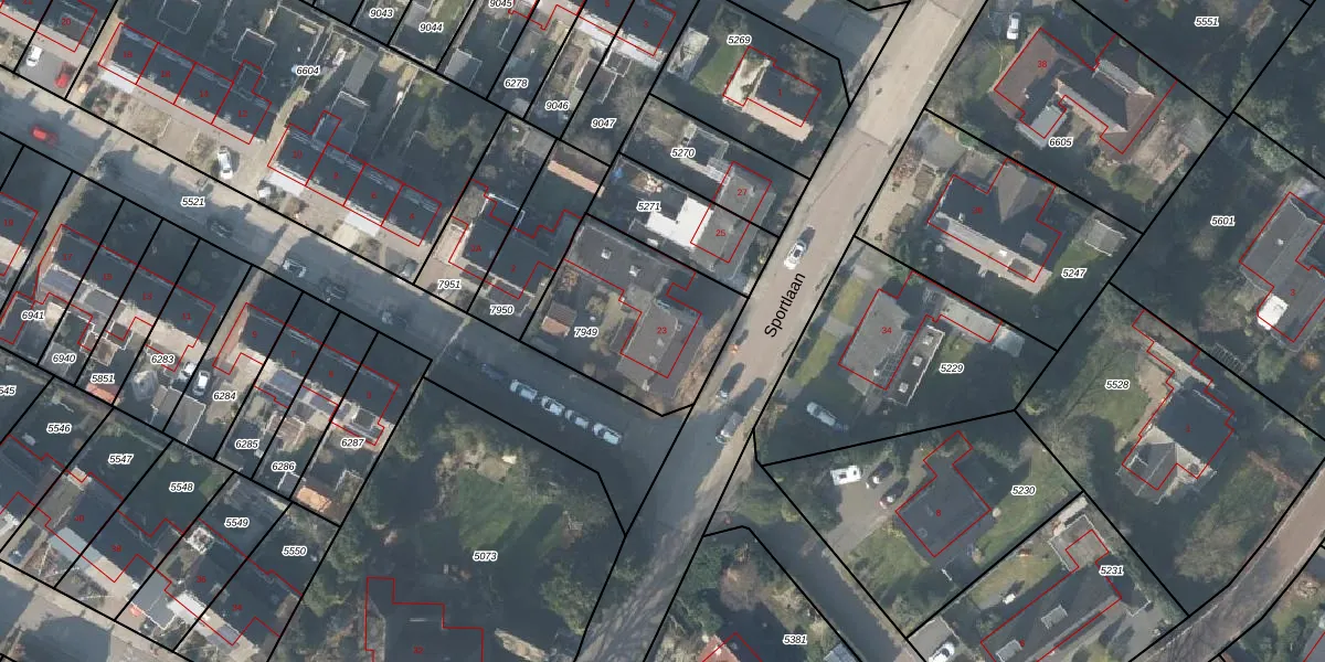 Het perceel waarop Sportlaan 23 staat heeft een oppervlakte van 591 m². Dit is een groot perceel. De perceeloppervlakte wordt geregistreerd door het Kadaster. Gedetailleerde informatie over de maten van dit perceel kunt u vinden in het rapport Kadastrale kaart met maatvoering van Sportlaan 23.