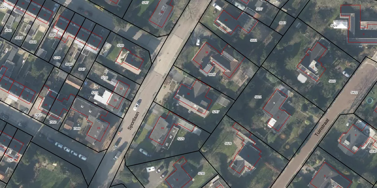 Sportlaan 36 is gelegen op kadastraal perceel LSR00H5247. Deze kadastrale aanduiding is uniek en wordt gebruikt door het Kadaster om eigendomsrechten en andere zakelijke rechten vast te leggen. Het perceel maakt onderdeel uit van de kadastrale gemeente Losser.