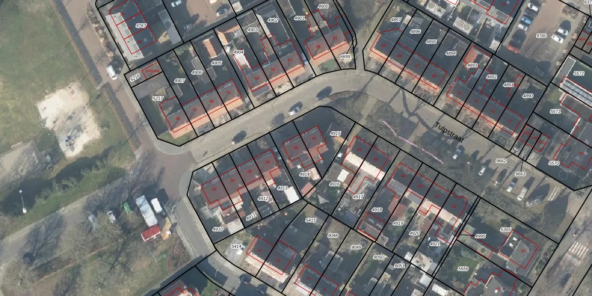 Tulpstraat 40 is gelegen op kadastraal perceel LSR00H4914. Deze kadastrale aanduiding is uniek en wordt gebruikt door het Kadaster om eigendomsrechten en andere zakelijke rechten vast te leggen. Het perceel maakt onderdeel uit van de kadastrale gemeente Losser.