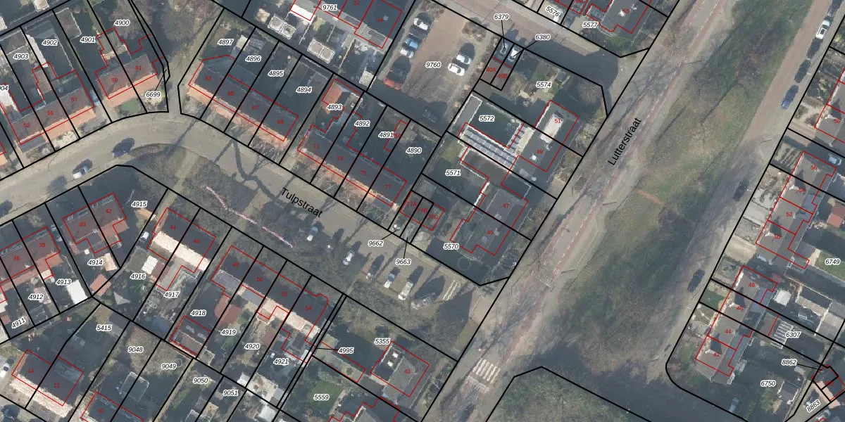Tulpstraat 77-B is gelegen op kadastraal perceel LSR00H9663. Deze kadastrale aanduiding is uniek en wordt gebruikt door het Kadaster om eigendomsrechten en andere zakelijke rechten vast te leggen. Het perceel maakt onderdeel uit van de kadastrale gemeente Losser.