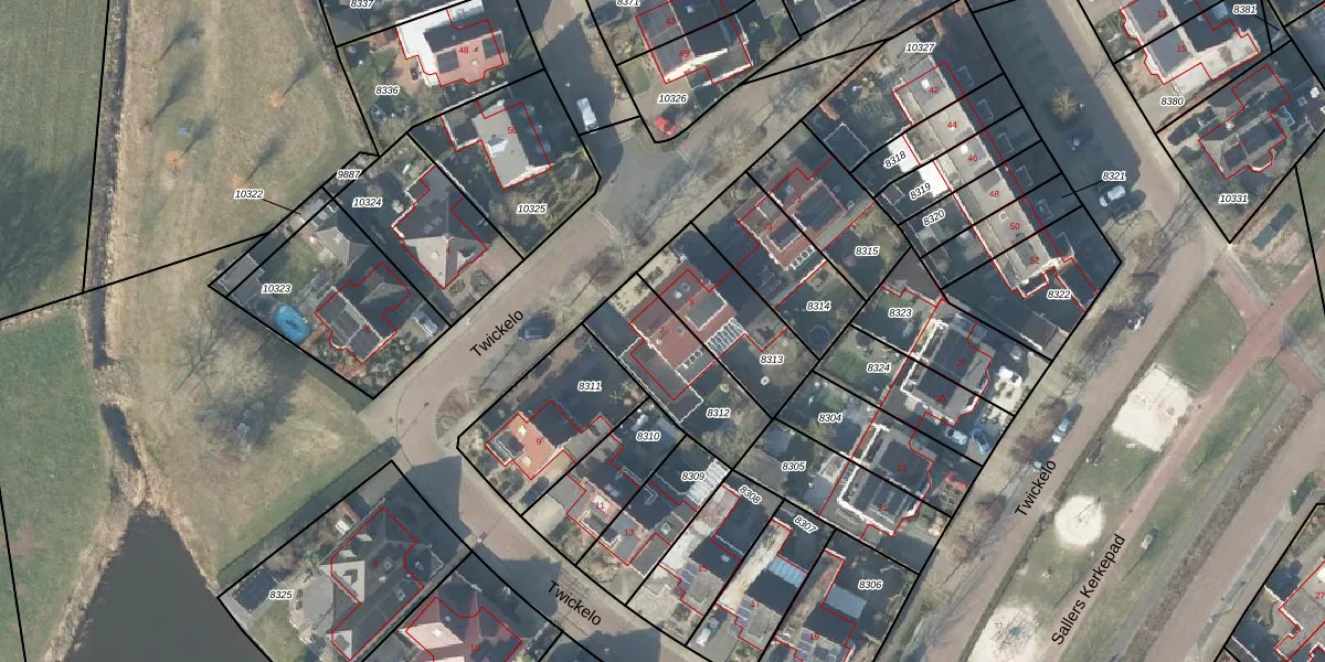 Het perceel waarop Twickelo 7 staat heeft een oppervlakte van 341 m². Dit is een groot perceel. De perceeloppervlakte wordt geregistreerd door het Kadaster. Gedetailleerde informatie over de maten van dit perceel kunt u vinden in het rapport Kadastrale kaart met maatvoering van Twickelo 7.