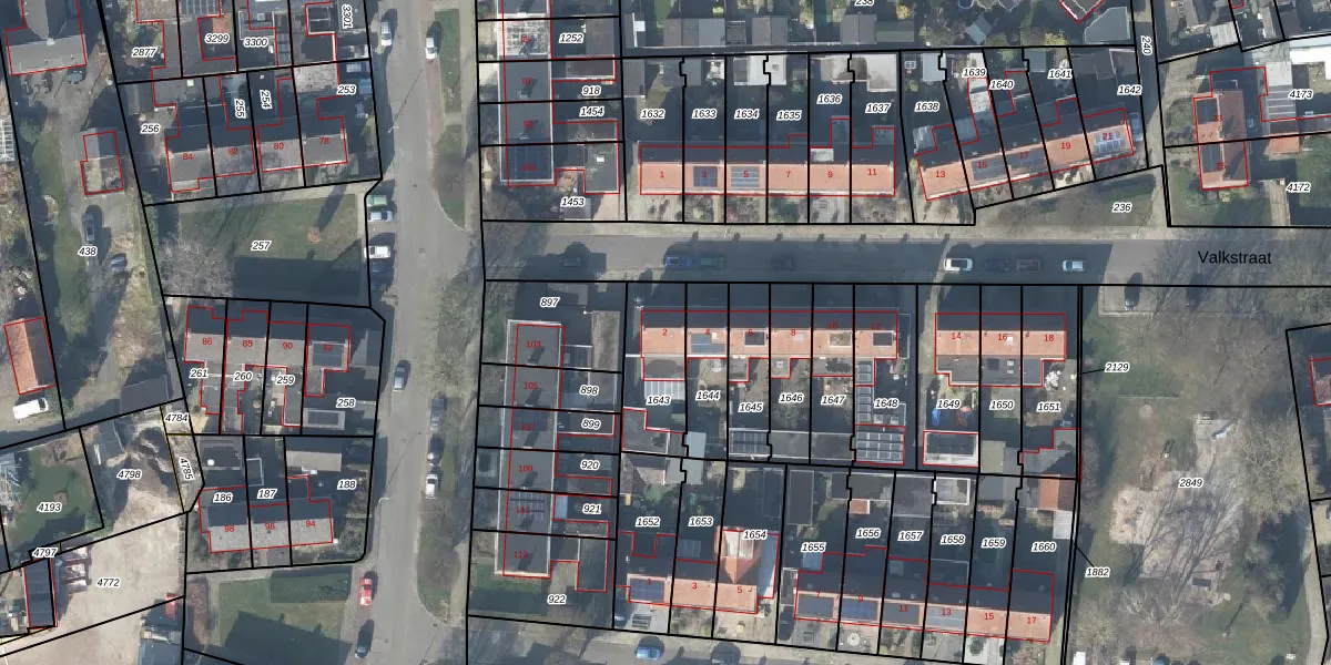 Het perceel waarop Valkstraat 2 staat heeft een oppervlakte van 245 m². Dit is een middelgroot perceel. De perceeloppervlakte wordt geregistreerd door het Kadaster. Gedetailleerde informatie over de maten van dit perceel kunt u vinden in het rapport Kadastrale kaart met maatvoering van Valkstraat 2.