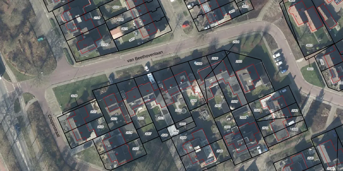 Het perceel waarop van Beethovenlaan 37 staat heeft een oppervlakte van 354 m². Dit is een groot perceel. De perceeloppervlakte wordt geregistreerd door het Kadaster. Gedetailleerde informatie over de maten van dit perceel kunt u vinden in het rapport Kadastrale kaart met maatvoering van van Beethovenlaan 37.