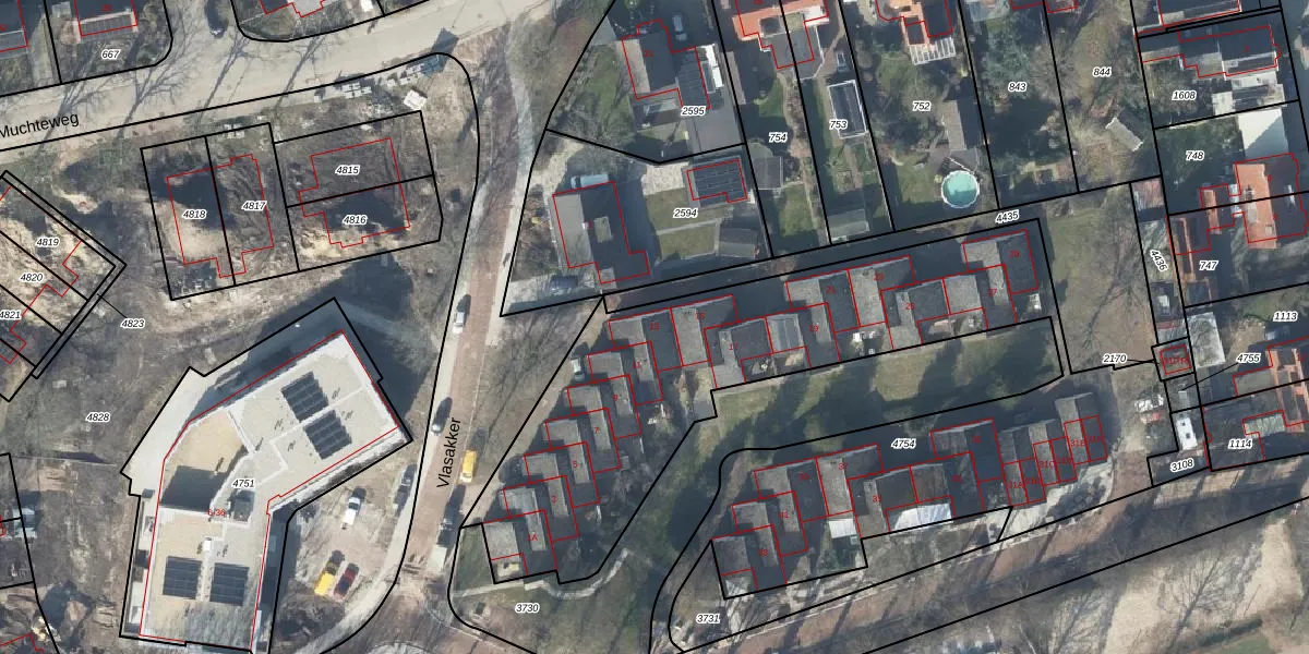Het perceel waarop Vlasakker 13 staat heeft een oppervlakte van 3188 m². Dit is een zeer groot perceel. De perceeloppervlakte wordt geregistreerd door het Kadaster. Gedetailleerde informatie over de maten van dit perceel kunt u vinden in het rapport Kadastrale kaart met maatvoering van Vlasakker 13.