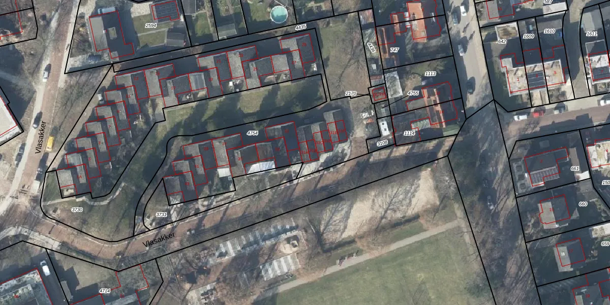 Het perceel waarop Vlasakker 31-A staat heeft een oppervlakte van 3188 m². Dit is een zeer groot perceel. De perceeloppervlakte wordt geregistreerd door het Kadaster. Gedetailleerde informatie over de maten van dit perceel kunt u vinden in het rapport Kadastrale kaart met maatvoering van Vlasakker 31-A.