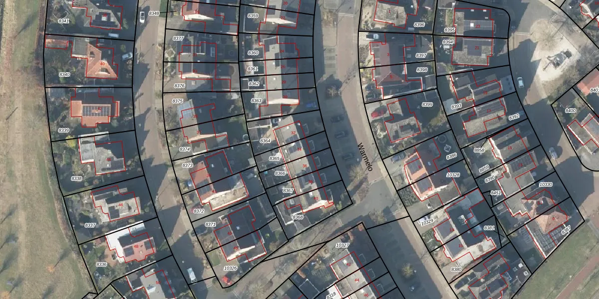Warmelo 34 is gelegen op kadastraal perceel LSR00H8365. Deze kadastrale aanduiding is uniek en wordt gebruikt door het Kadaster om eigendomsrechten en andere zakelijke rechten vast te leggen. Het perceel maakt onderdeel uit van de kadastrale gemeente Losser.