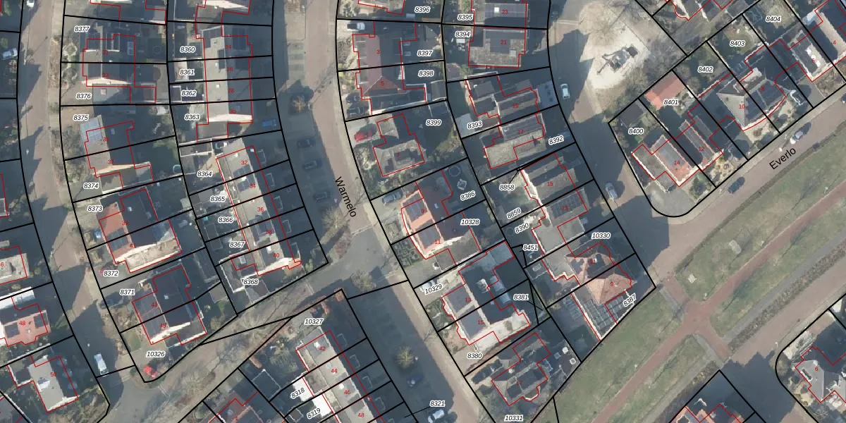 Het perceel waarop Warmelo 9 staat heeft een oppervlakte van 281 m². Dit is een middelgroot perceel. De perceeloppervlakte wordt geregistreerd door het Kadaster. Gedetailleerde informatie over de maten van dit perceel kunt u vinden in het rapport Kadastrale kaart met maatvoering van Warmelo 9.