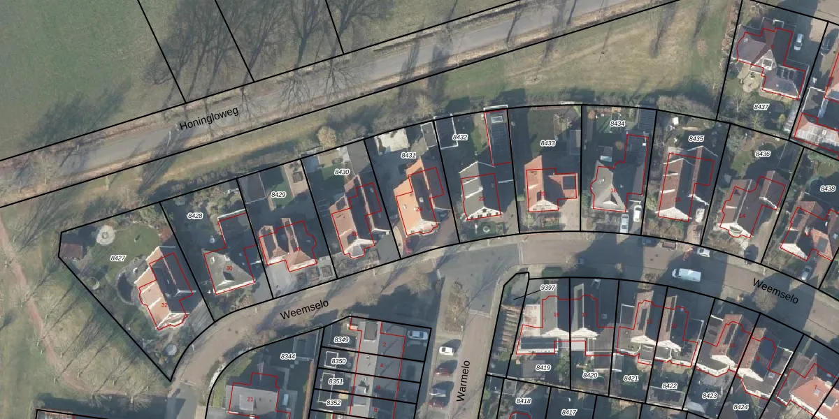 Het perceel waarop Weemselo 24 staat heeft een oppervlakte van 476 m². Dit is een groot perceel. De perceeloppervlakte wordt geregistreerd door het Kadaster. Gedetailleerde informatie over de maten van dit perceel kunt u vinden in het rapport Kadastrale kaart met maatvoering van Weemselo 24.