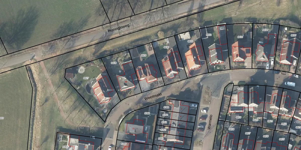 Het perceel waarop Weemselo 28 staat heeft een oppervlakte van 480 m². Dit is een groot perceel. De perceeloppervlakte wordt geregistreerd door het Kadaster. Gedetailleerde informatie over de maten van dit perceel kunt u vinden in het rapport Kadastrale kaart met maatvoering van Weemselo 28.