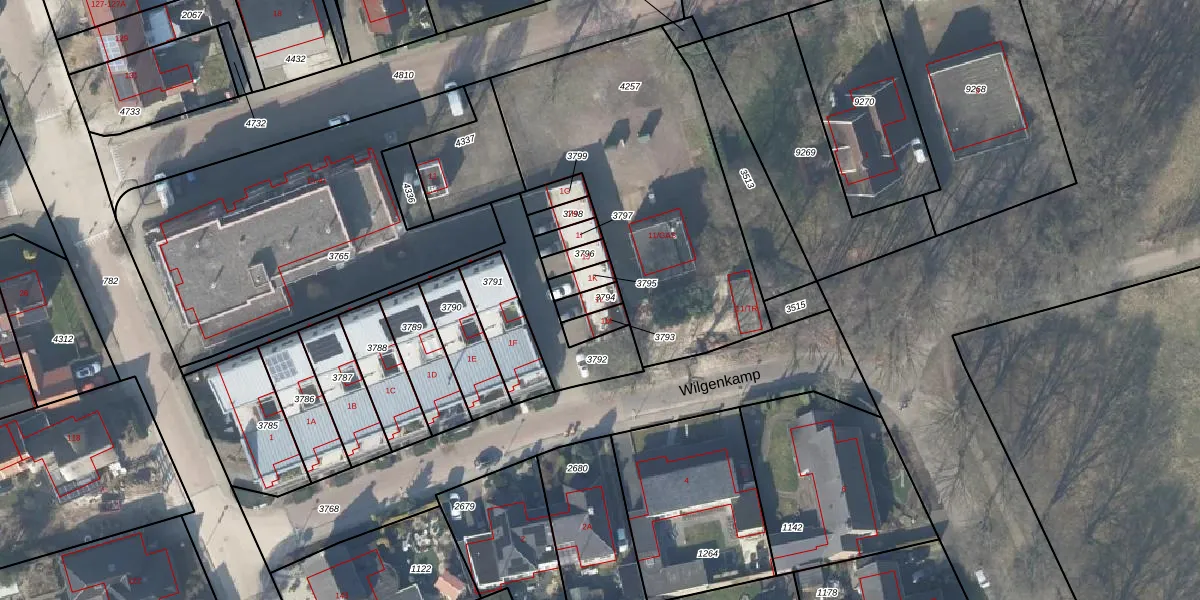 Het perceel waarop Wilgenkamp 1-L staat heeft een oppervlakte van 40 m². Dit is een klein perceel. De perceeloppervlakte wordt geregistreerd door het Kadaster. Gedetailleerde informatie over de maten van dit perceel kunt u vinden in het rapport Kadastrale kaart met maatvoering van Wilgenkamp 1-L.