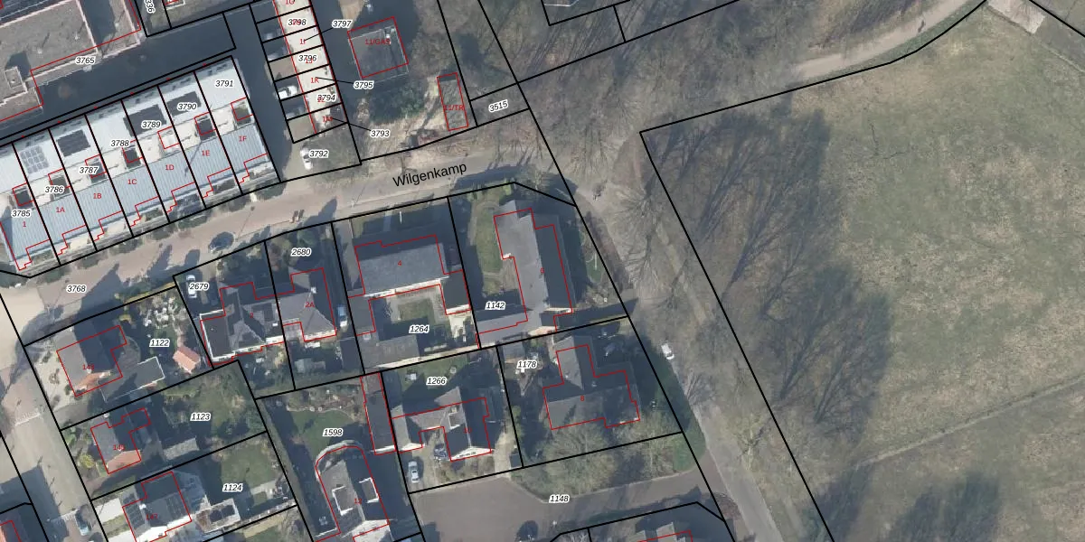 Het perceel waarop Wilgenkamp 6 staat heeft een oppervlakte van 677 m². Dit is een groot perceel. De perceeloppervlakte wordt geregistreerd door het Kadaster. Gedetailleerde informatie over de maten van dit perceel kunt u vinden in het rapport Kadastrale kaart met maatvoering van Wilgenkamp 6.