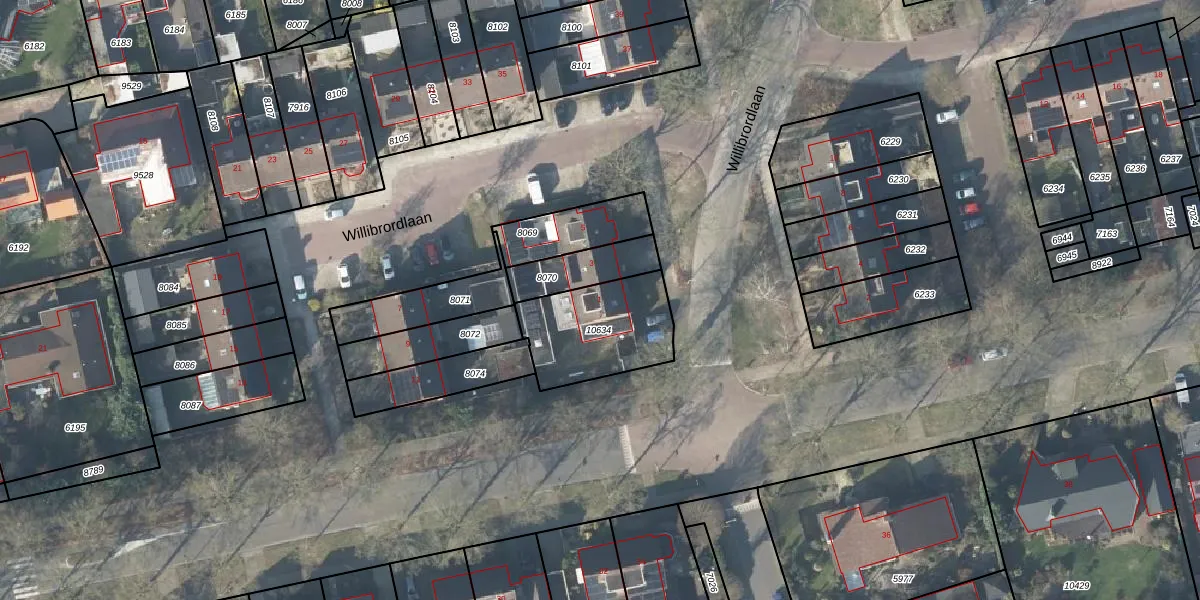 Het perceel waarop Willibrordlaan 1 staat heeft een oppervlakte van 363 m². Dit is een groot perceel. De perceeloppervlakte wordt geregistreerd door het Kadaster. Gedetailleerde informatie over de maten van dit perceel kunt u vinden in het rapport Kadastrale kaart met maatvoering van Willibrordlaan 1.