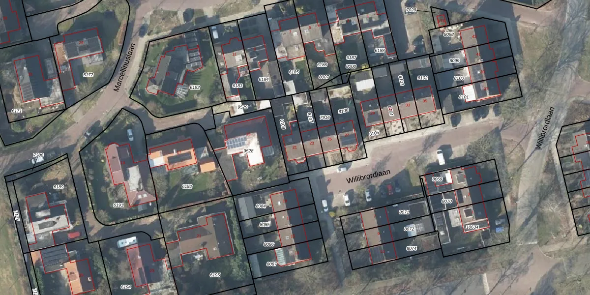 Het perceel waarop Willibrordlaan 21 staat heeft een oppervlakte van 194 m². Dit is een middelgroot perceel. De perceeloppervlakte wordt geregistreerd door het Kadaster. Gedetailleerde informatie over de maten van dit perceel kunt u vinden in het rapport Kadastrale kaart met maatvoering van Willibrordlaan 21.
