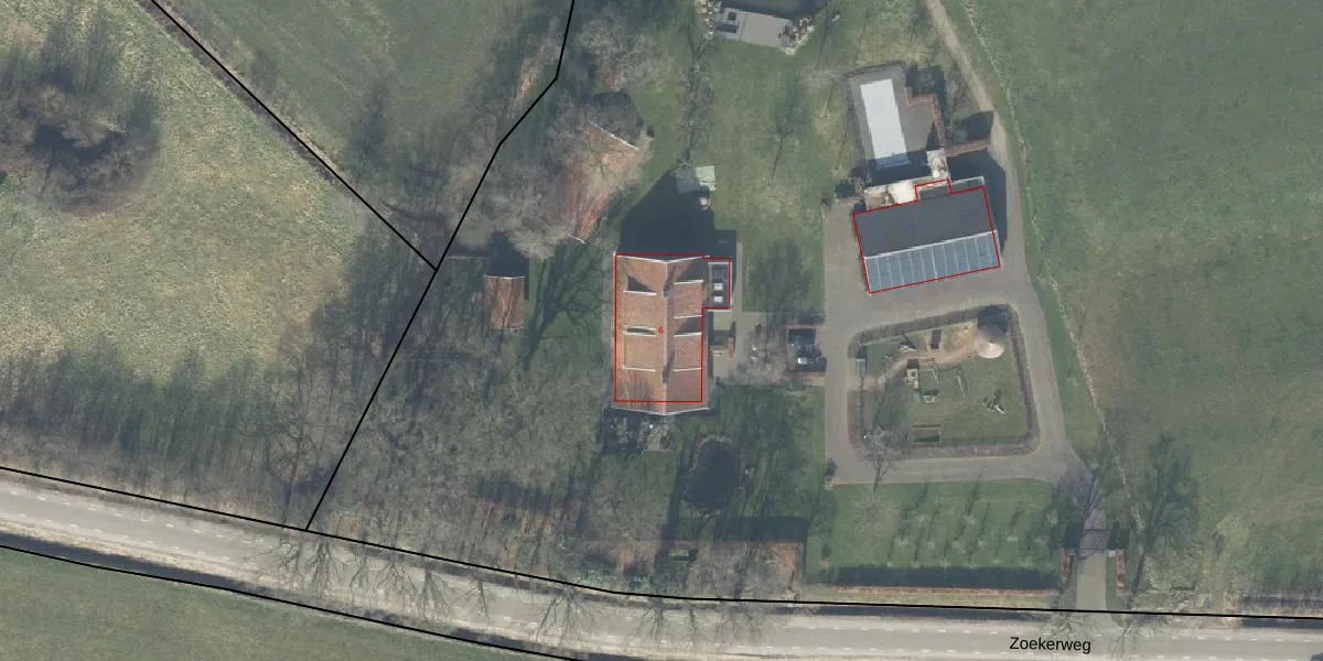 Het perceel waarop Zoekerweg 6 staat heeft een oppervlakte van 4,7 ha. Dit is een zeer groot perceel. De perceeloppervlakte wordt geregistreerd door het Kadaster. Gedetailleerde informatie over de maten van dit perceel kunt u vinden in het rapport Kadastrale kaart met maatvoering van Zoekerweg 6.