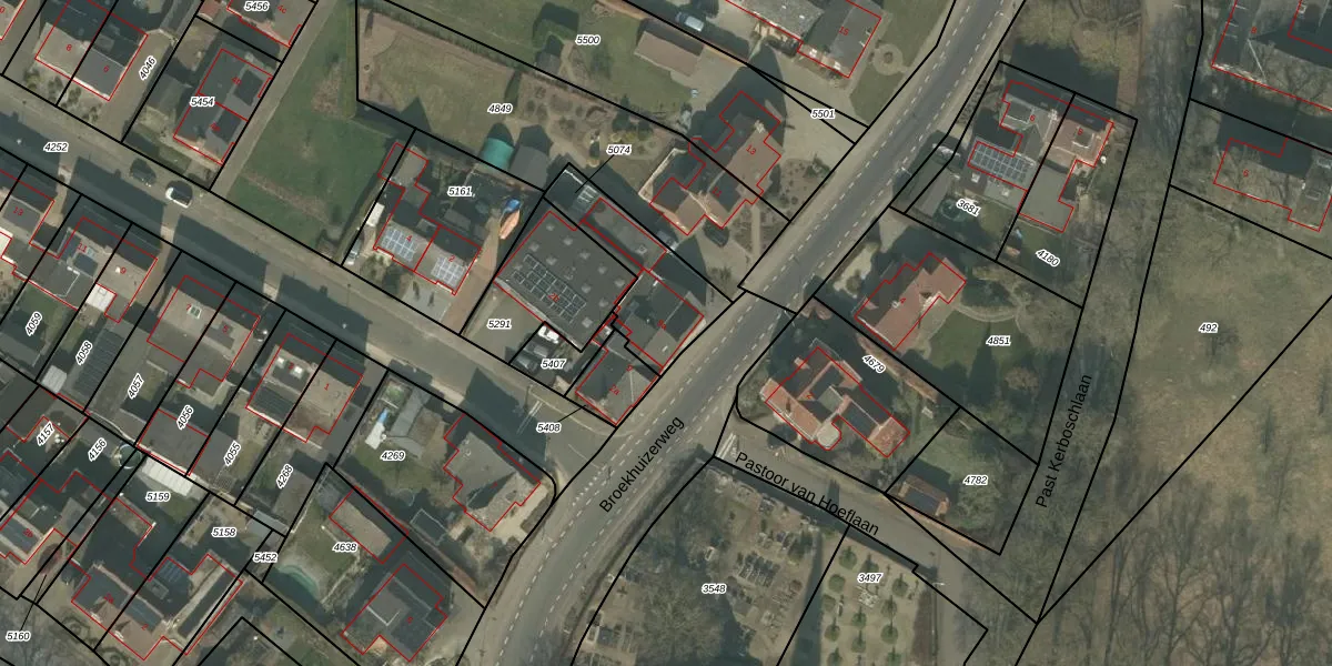 Broekhuizerweg 9-a is gelegen op kadastraal perceel GBV00A5074. Deze kadastrale aanduiding is uniek en wordt gebruikt door het Kadaster om eigendomsrechten en andere zakelijke rechten vast te leggen. Het perceel maakt onderdeel uit van de kadastrale gemeente Grubbenvorst.