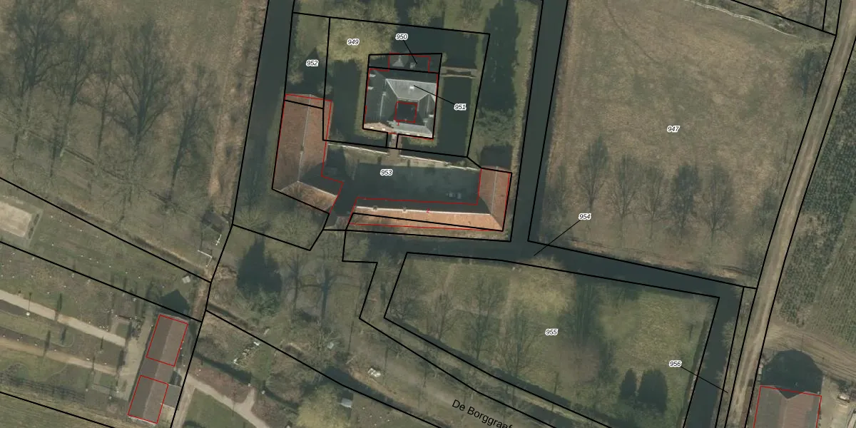 Het perceel waarop De Borggraaf 2 staat heeft een oppervlakte van 970 m². Dit is een groot perceel. De perceeloppervlakte wordt geregistreerd door het Kadaster. Gedetailleerde informatie over de maten van dit perceel kunt u vinden in het rapport Kadastrale kaart met maatvoering van De Borggraaf 2.