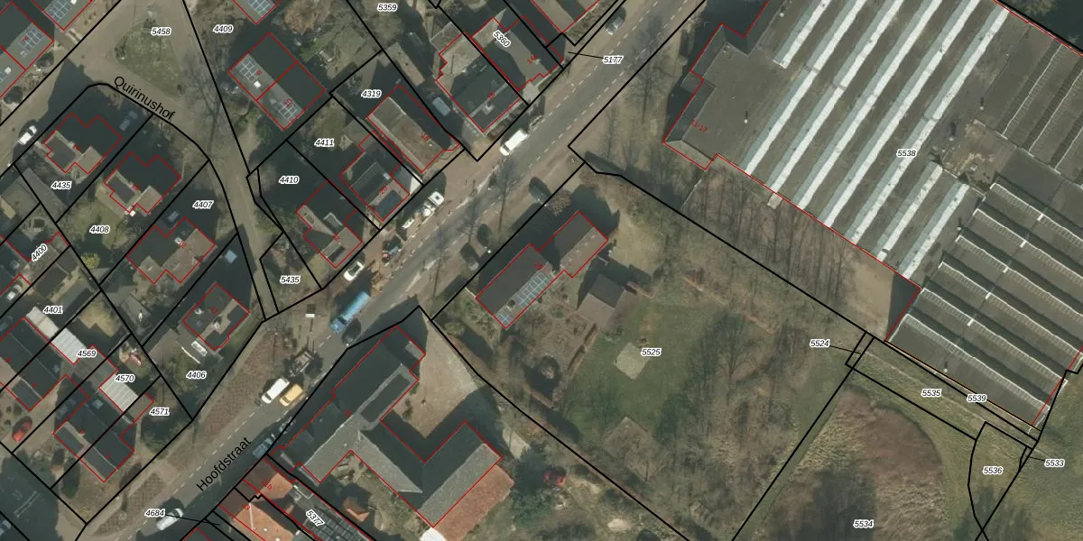 Het perceel waarop Hoofdstraat 19 staat heeft een oppervlakte van 3007 m². Dit is een zeer groot perceel. De perceeloppervlakte wordt geregistreerd door het Kadaster. Gedetailleerde informatie over de maten van dit perceel kunt u vinden in het rapport Kadastrale kaart met maatvoering van Hoofdstraat 19.