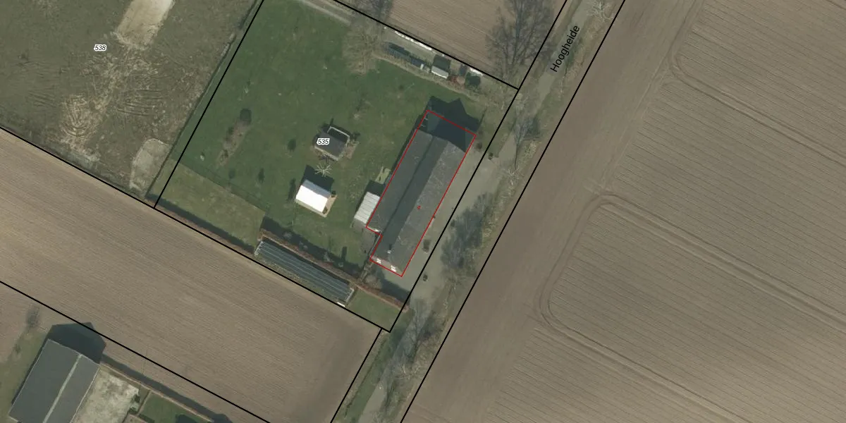 Hoogheide 4 is gelegen op kadastraal perceel GBV00K535. Deze kadastrale aanduiding is uniek en wordt gebruikt door het Kadaster om eigendomsrechten en andere zakelijke rechten vast te leggen. Het perceel maakt onderdeel uit van de kadastrale gemeente Grubbenvorst.