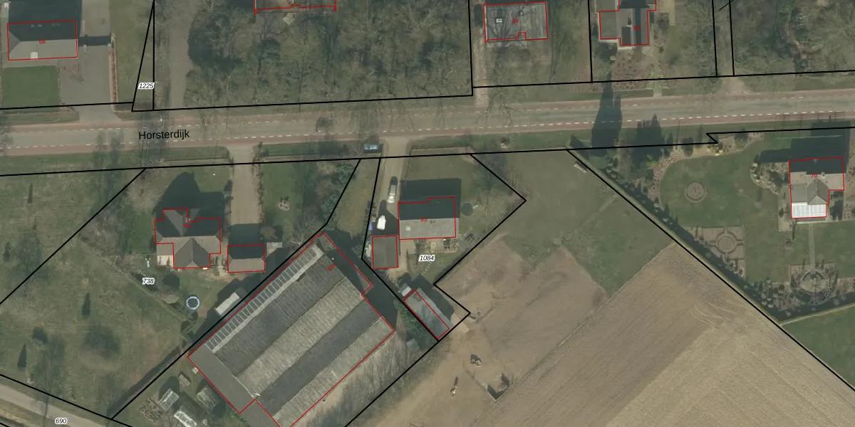 Het perceel waarop Horsterdijk 83 staat heeft een oppervlakte van 938 m². Dit is een groot perceel. De perceeloppervlakte wordt geregistreerd door het Kadaster. Gedetailleerde informatie over de maten van dit perceel kunt u vinden in het rapport Kadastrale kaart met maatvoering van Horsterdijk 83.