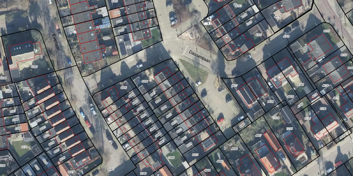 Dassenlaan 21 is gelegen op kadastraal perceel LTR00K6008. Deze kadastrale aanduiding is uniek en wordt gebruikt door het Kadaster om eigendomsrechten en andere zakelijke rechten vast te leggen. Het perceel maakt onderdeel uit van de kadastrale gemeente Lunteren.