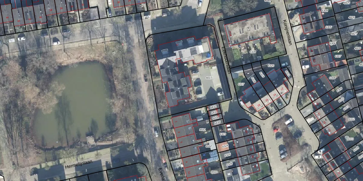 Het perceel waarop Everlaan 1-H staat heeft een oppervlakte van 1780 m². Dit is een zeer groot perceel. De perceeloppervlakte wordt geregistreerd door het Kadaster. Gedetailleerde informatie over de maten van dit perceel kunt u vinden in het rapport Kadastrale kaart met maatvoering van Everlaan 1-H.