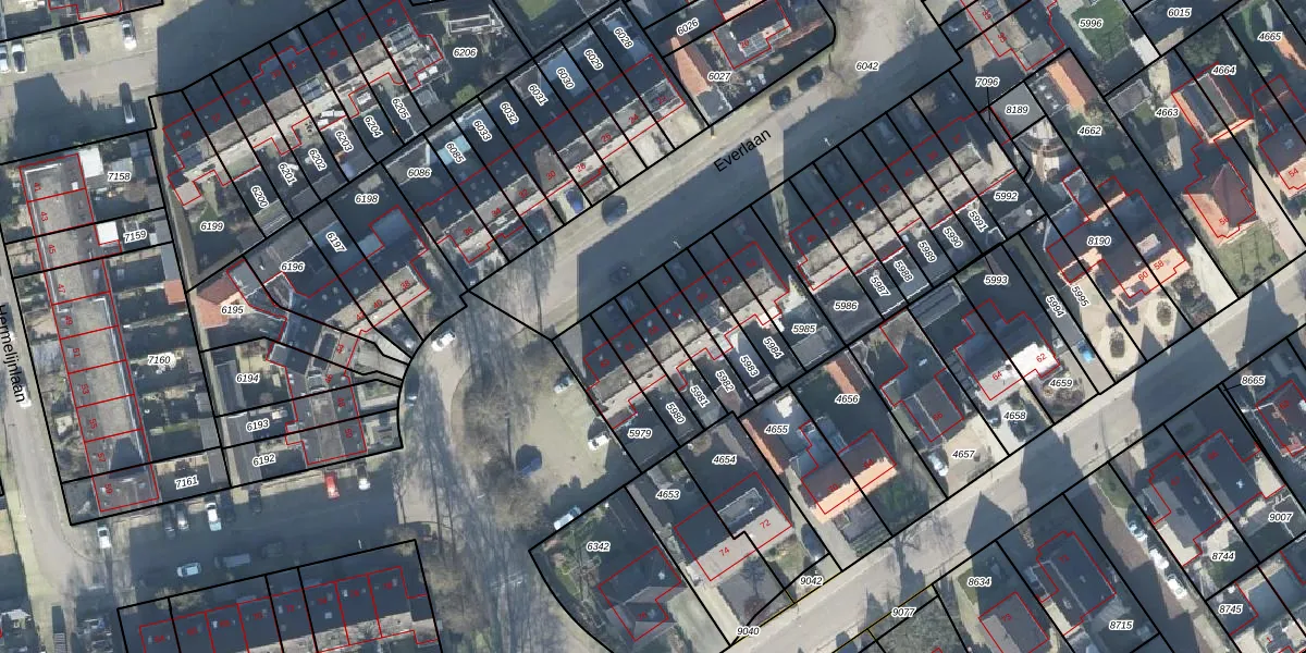 Het perceel waarop Everlaan 59 staat heeft een oppervlakte van 110 m². Dit is een middelgroot perceel. De perceeloppervlakte wordt geregistreerd door het Kadaster. Gedetailleerde informatie over de maten van dit perceel kunt u vinden in het rapport Kadastrale kaart met maatvoering van Everlaan 59.