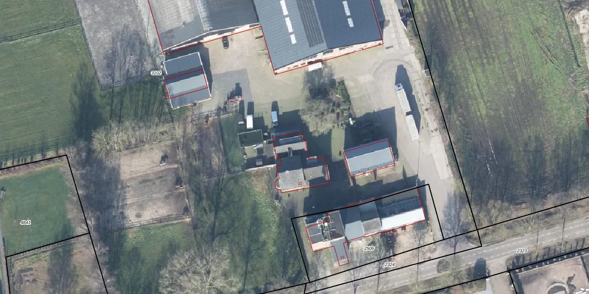 Het perceel waarop Goorsteeg 21-A staat heeft een oppervlakte van 2,2 ha. Dit is een zeer groot perceel. De perceeloppervlakte wordt geregistreerd door het Kadaster. Gedetailleerde informatie over de maten van dit perceel kunt u vinden in het rapport Kadastrale kaart met maatvoering van Goorsteeg 21-A.