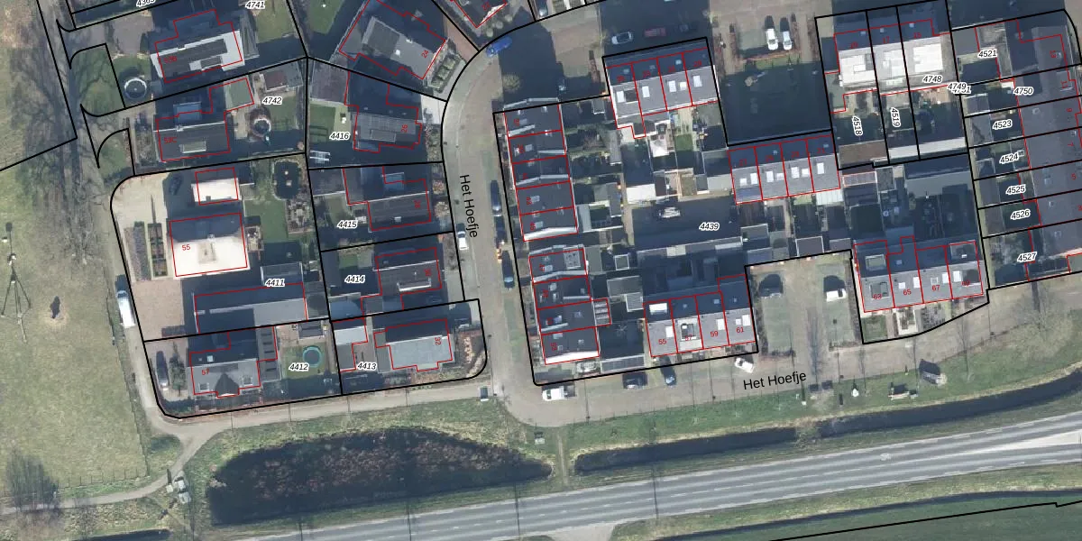 Het perceel waarop Het Hoefje 47 staat heeft een oppervlakte van 3475 m². Dit is een zeer groot perceel. De perceeloppervlakte wordt geregistreerd door het Kadaster. Gedetailleerde informatie over de maten van dit perceel kunt u vinden in het rapport Kadastrale kaart met maatvoering van Het Hoefje 47.