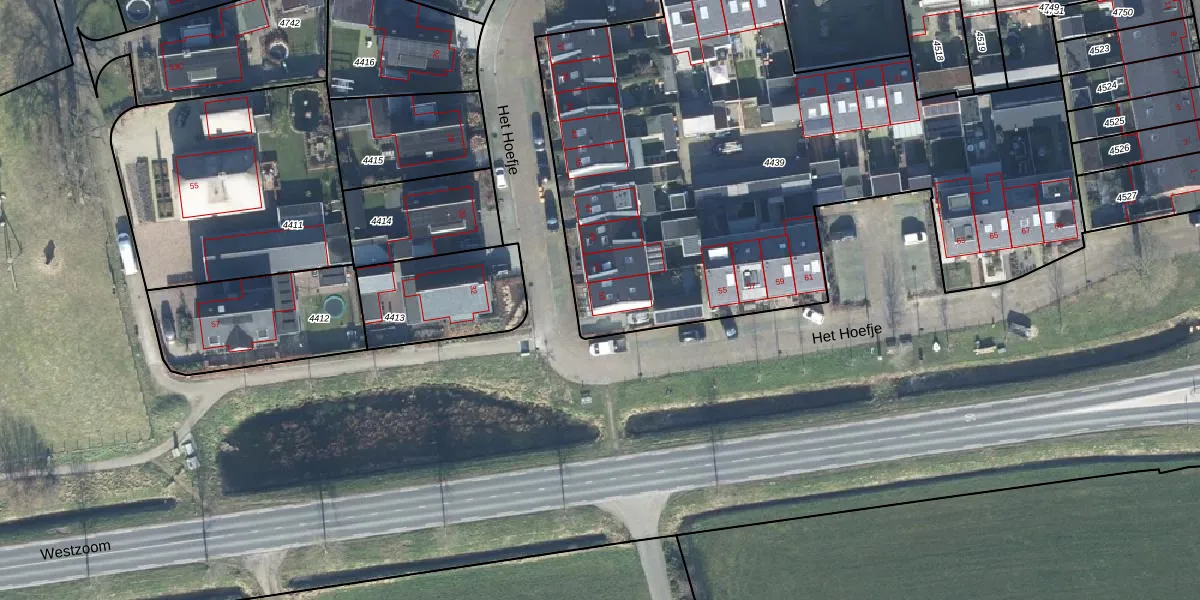 Het perceel waarop Het Hoefje 53 staat heeft een oppervlakte van 3475 m². Dit is een zeer groot perceel. De perceeloppervlakte wordt geregistreerd door het Kadaster. Gedetailleerde informatie over de maten van dit perceel kunt u vinden in het rapport Kadastrale kaart met maatvoering van Het Hoefje 53.
