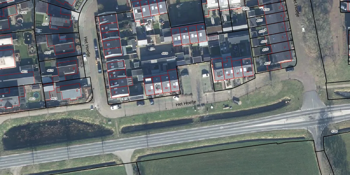 Het perceel waarop Het Hoefje 61 staat heeft een oppervlakte van 3475 m². Dit is een zeer groot perceel. De perceeloppervlakte wordt geregistreerd door het Kadaster. Gedetailleerde informatie over de maten van dit perceel kunt u vinden in het rapport Kadastrale kaart met maatvoering van Het Hoefje 61.