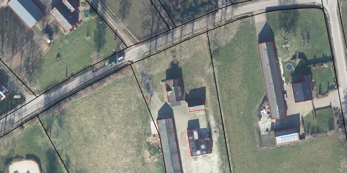 Het perceel waarop Kijkveld 4 staat heeft een oppervlakte van 4490 m². Dit is een zeer groot perceel. De perceeloppervlakte wordt geregistreerd door het Kadaster. Gedetailleerde informatie over de maten van dit perceel kunt u vinden in het rapport Kadastrale kaart met maatvoering van Kijkveld 4.